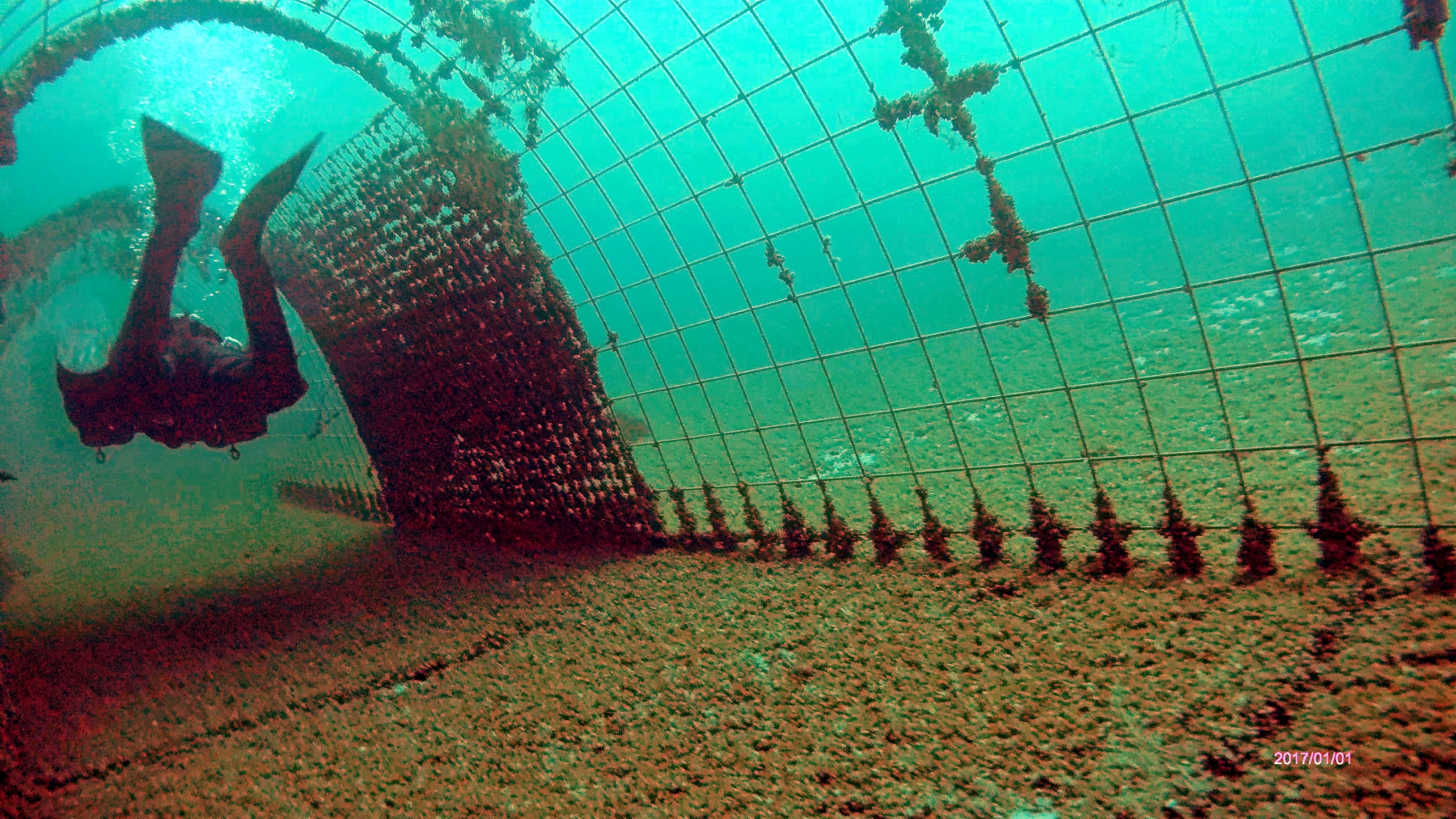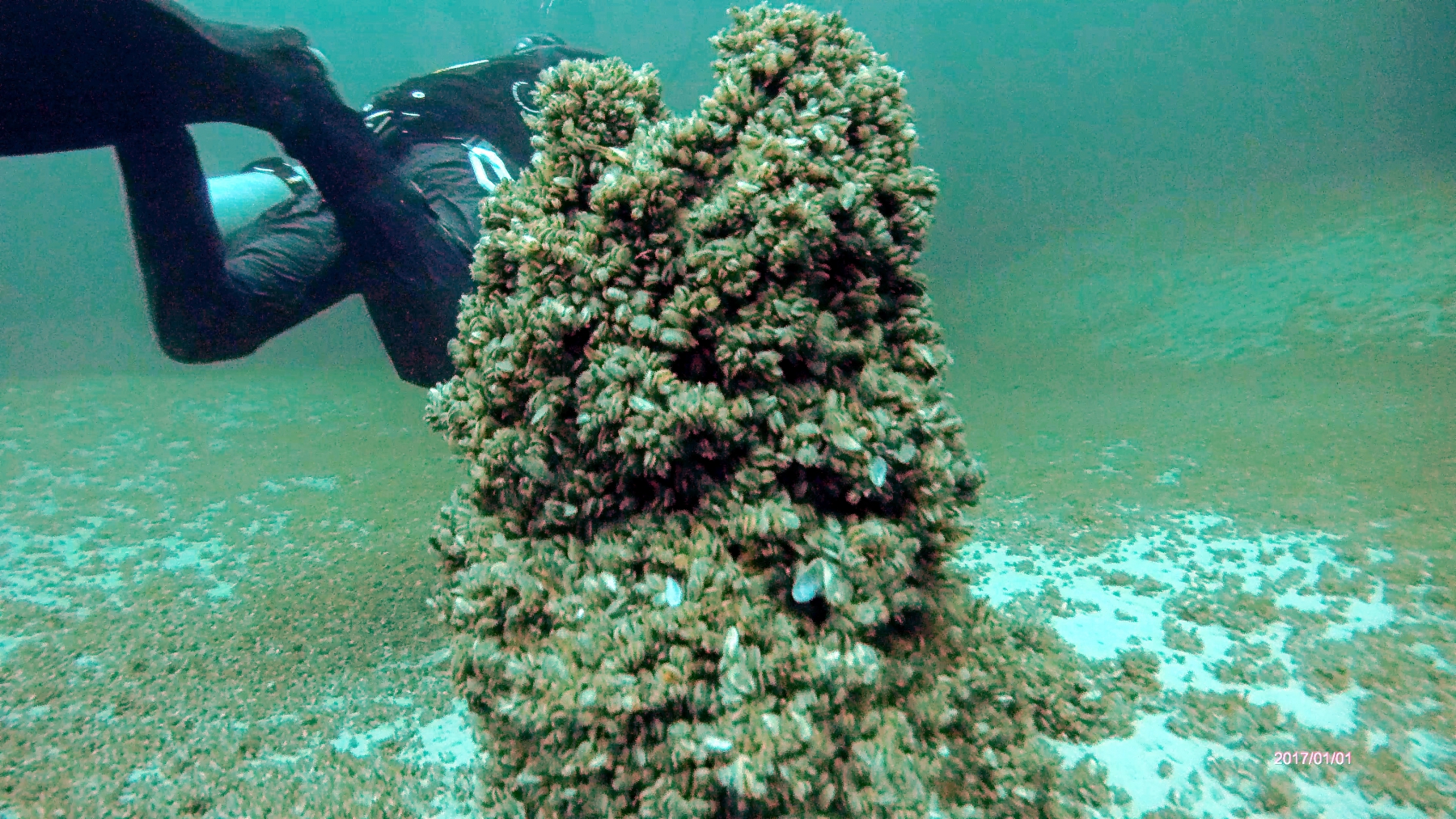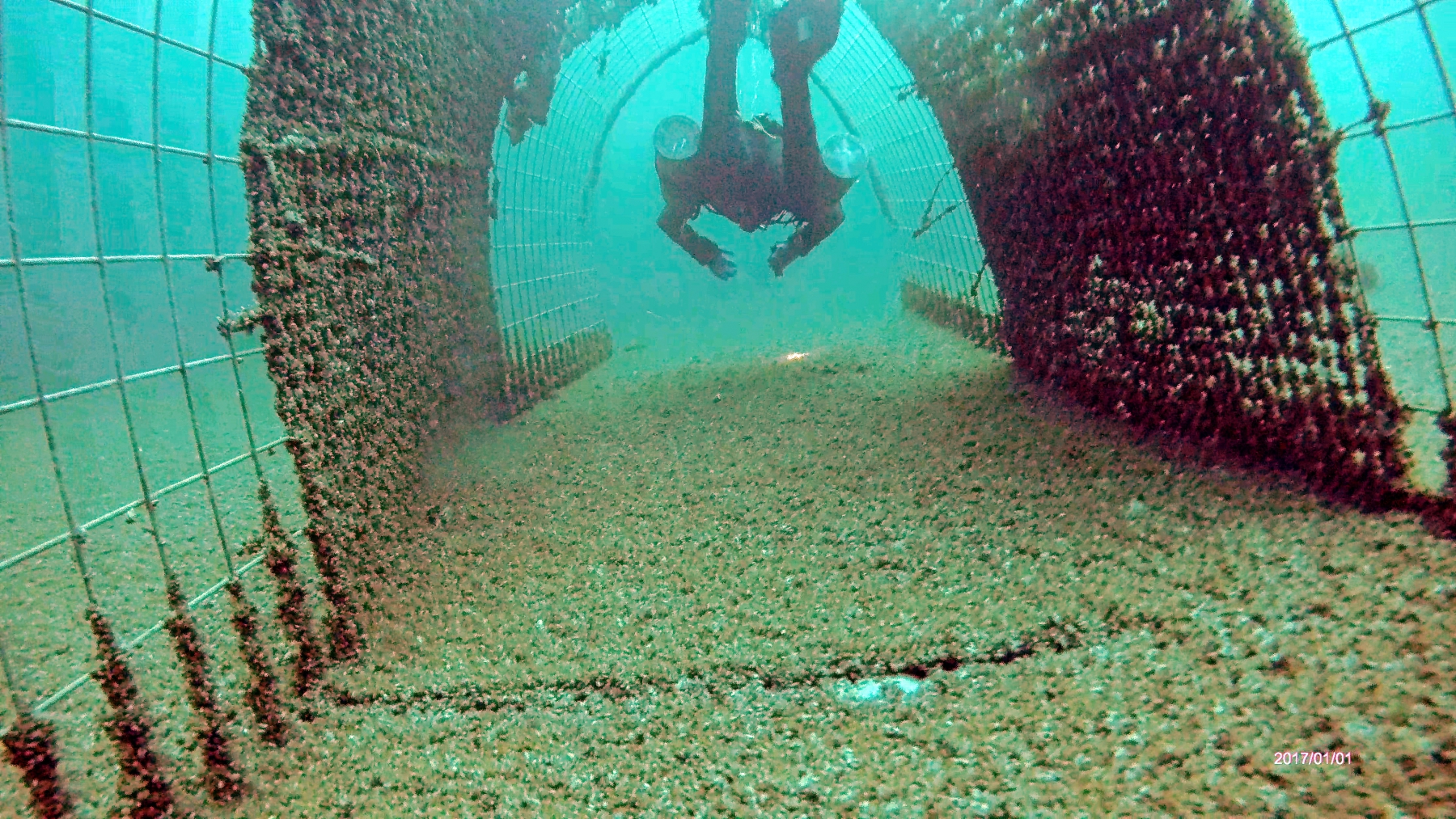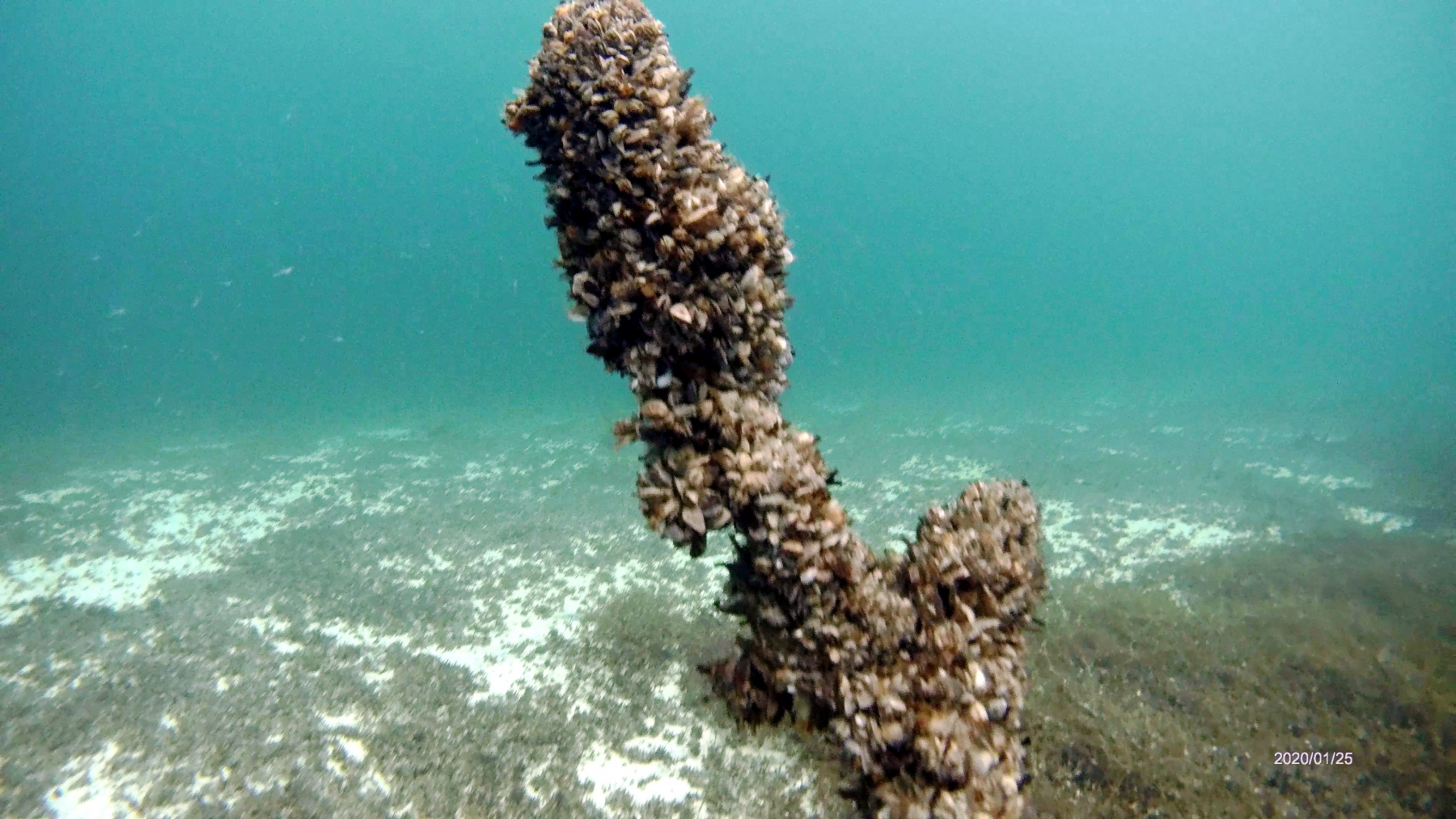 Sie führte zu einem Felsen und es ging tiefer, bis knapp 25m. Auf dem Weg dahin verlor ich aber die Leine, weil sie ebenfalls mit Muscheln übersät war.