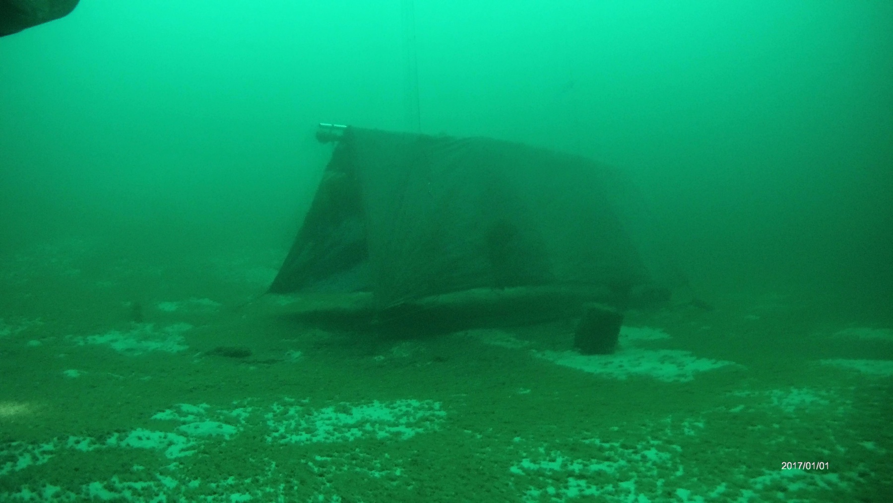 Wir beschlossen kurzer Hand linke Schulter entlang wieder leicht aufzusteigen. Niki hat den ersten Krebs gesichtet und kurzer Hand, dank der super Sicht, den Zelt-Parkour, den man unten aufgestellt hat mit dem Koch der uns das heutige Tagesgericht empfiehlt: FISCH. Wir haben den ganzen Tag keinen gesehen, das vorab. Weiter linke Schulter entlang entdeckten wir drei kleine Zelte und kurz danach haben wir Claudio und Tobi getroffen. Wir schlossen uns den beiden an und tauchten hinter ihnen her. Nach ca. 5-10min hatte ich noch 15min Nullzeit und wir sind umgekehrt um unseren Aufstieg fortzusetzen und machten uns auf den Weg zum Saftystop, um den Tauchgang zu beenden. Wir waren jetzt auch schon 40min bei 6 Grad Unterwasser, da wurde es auch schon etwas kühl. Aus dem Wasser das Grauen, Wasser Einbruch beim Vorstand :-). Kurz drauf konnten wir uns wieder aufwärmen mit Nikis Cappuccino und die anderen mit Tee.
