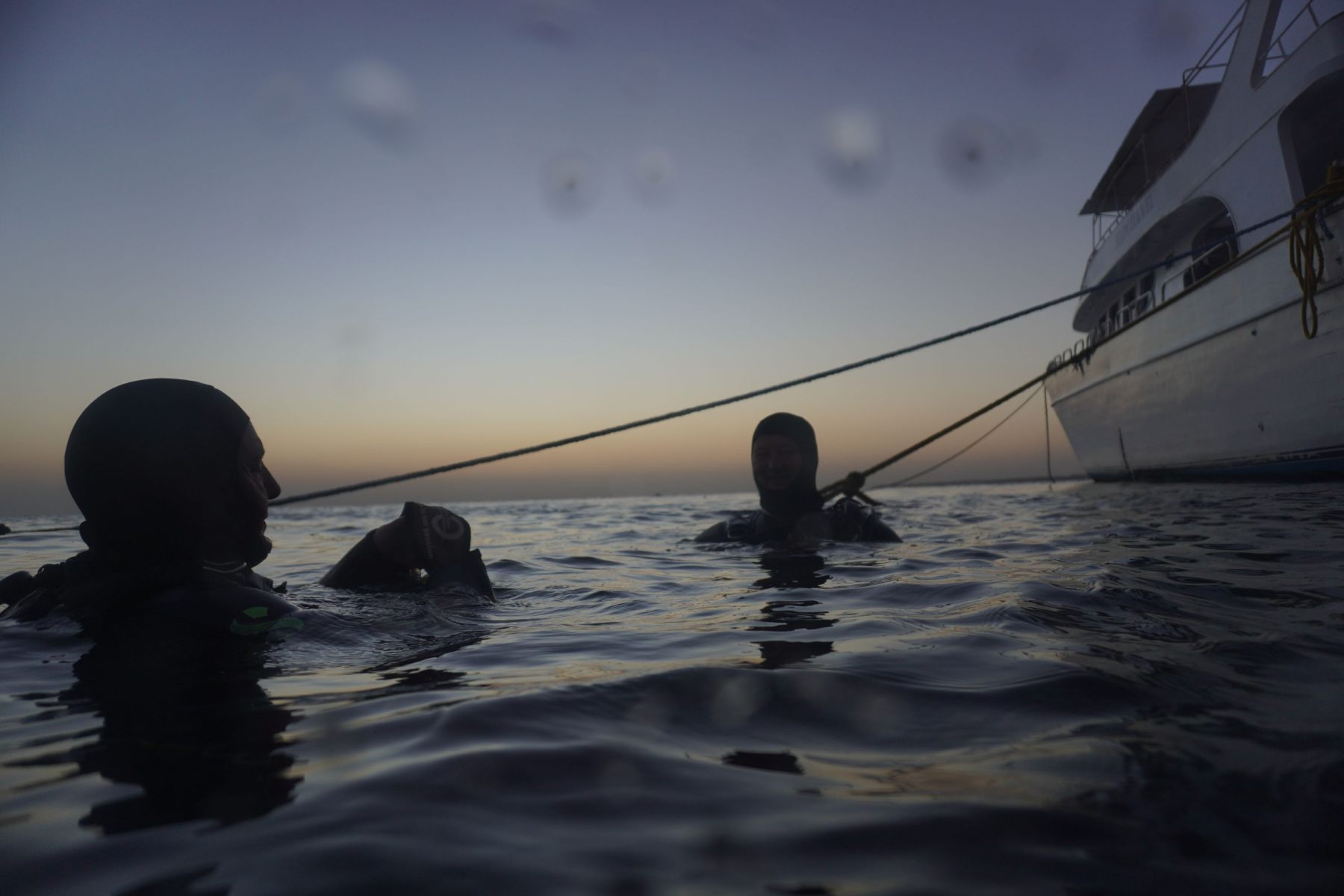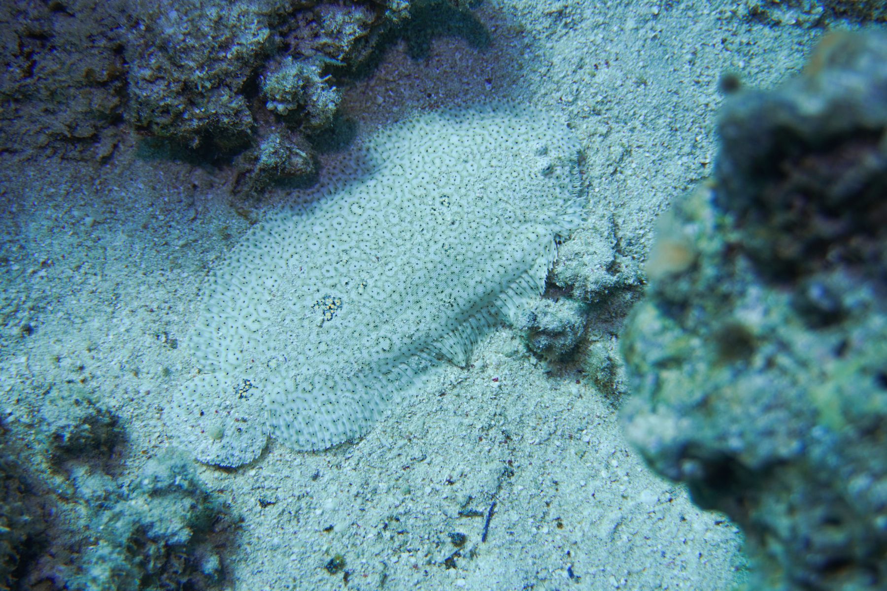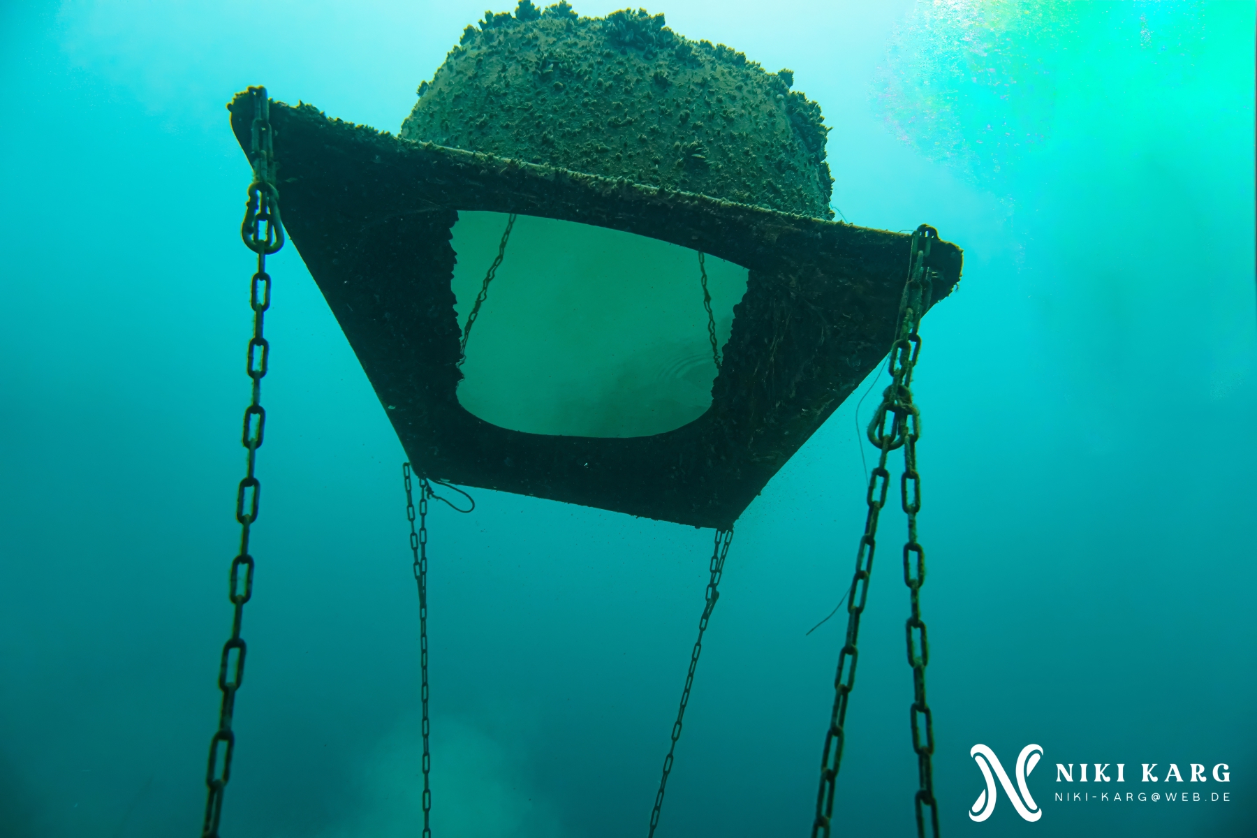 Irgendwann lässt der Sturm nach und wir können zum geplanten Early-Morning-Dive um 6 Uhr aufbrechen. Naja, die Wellen sind immer noch da, aber anscheinend wird es gehen. Draußen am Steg, bereits angezogen und zum Abtauchen bereit, möchten sich die Jungs von der Basis dann doch noch rückversichern lassen, ob wir wirklich ins Wasser können. Letztendlich bekommen wir auch grünes Licht. Wir wollten uns, wegen der Wellen unter Wasser treffen. Der Einstieg nicht ganz einfach, ab 8 Meter merkte man die Wellen aber fast nicht mehr. Spannend war dann der Ausstieg, letztendlich sind wir aber alle gesund und unversehrt wieder auf der Plattform gelandet.