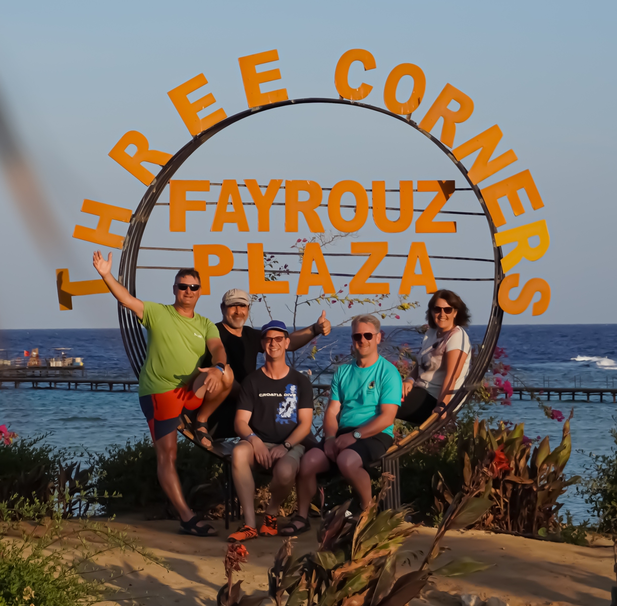 Zu fünft starten wir (Niki, Paul, Rainer, Michl und Moni) am Sonntagmittag mit zwei Autos gen München. Das Auto abgegeben, das Gepäck auf dem Band warten wir bei einem Vor-Onboarding-Kaffee auf das Zeichen in den Flieger zu dürfen. Da der Flieger nur zu einem Drittel gefüllt ist, haben wir einen bequemen Flug. Zwar werden wir mit bisschen durch Turbulenzen begleitet, landeten letztendlich sicher am Flughafen in Marsa Alam und waren rasch durch die Kontrollen und im Hotel Three Corner Fayrouz Resort.