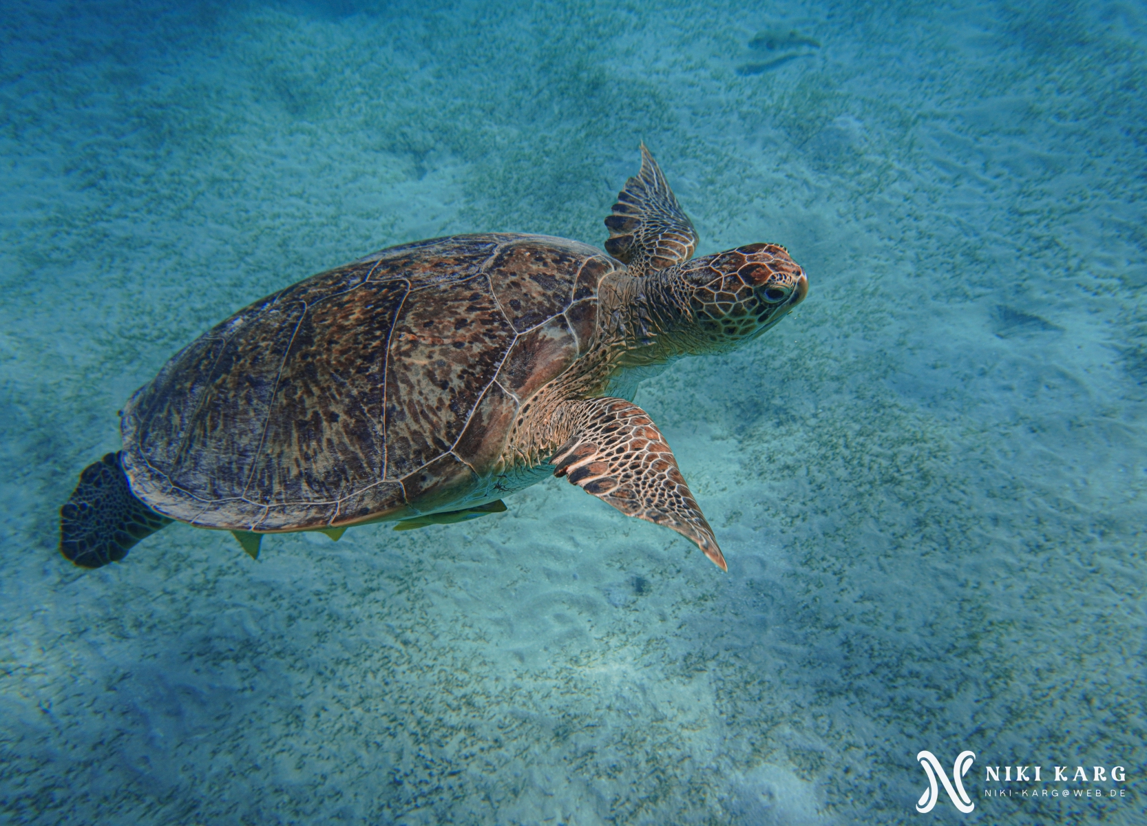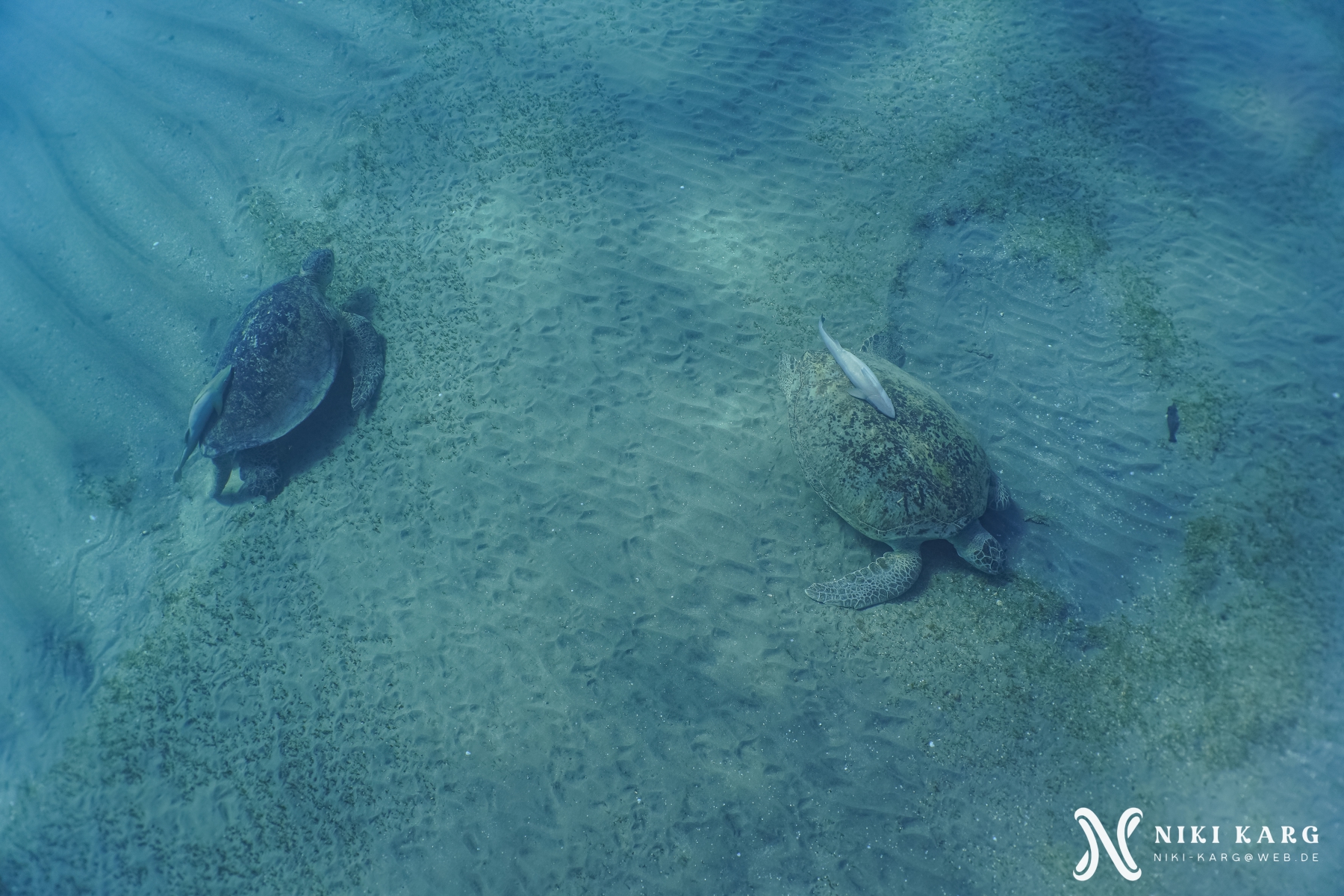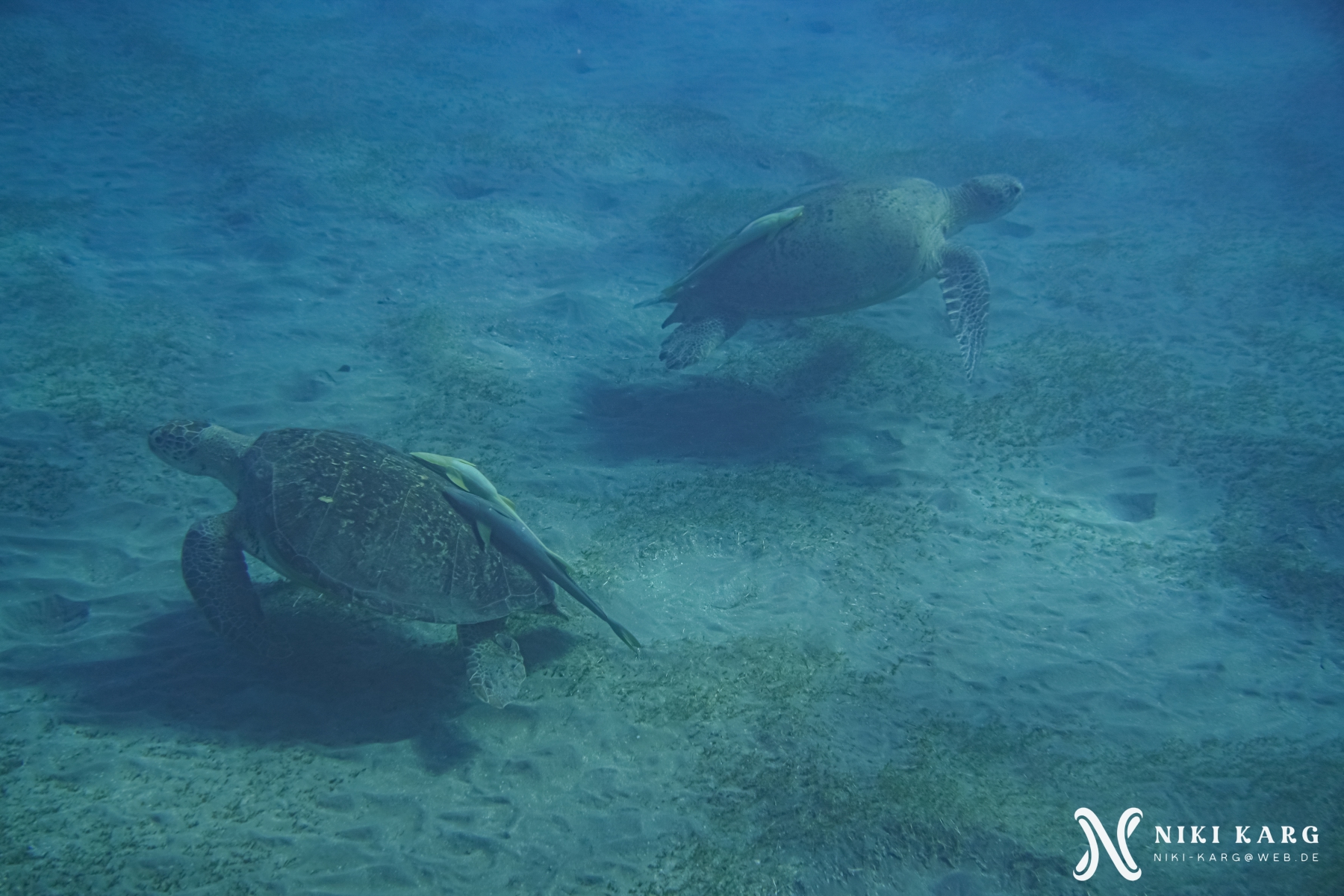 Neben vielen kleinen Sachen begegneten wir Schildkröten, Barakudas, Adlerrochen usw.
