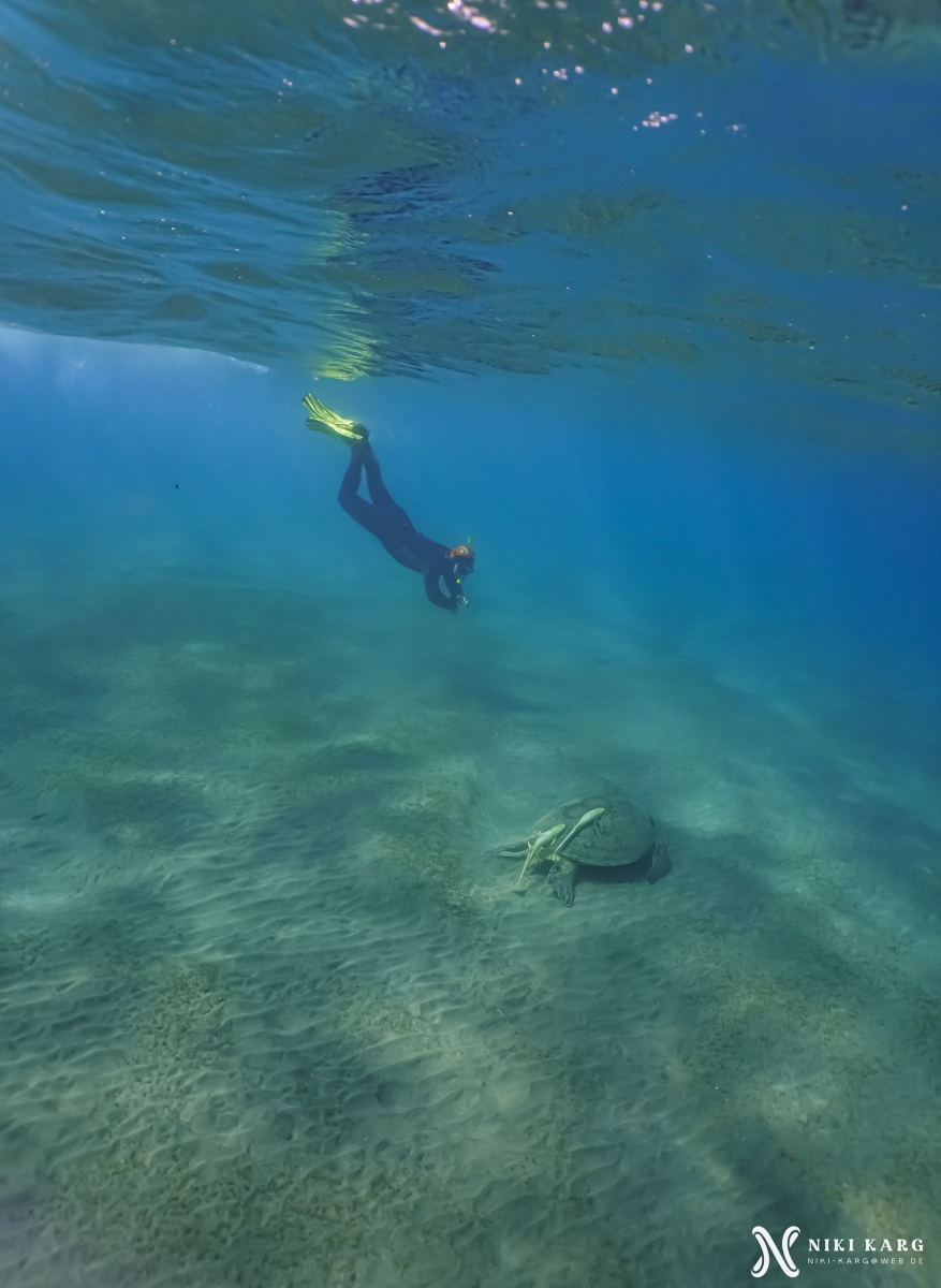 Diese besuchten uns am vorletzten Tag schon mal kurz in der Bucht, aber beim letzten Tauchgang begleiteten uns die 4 Delfine ganze 70 Minuten lang!!!