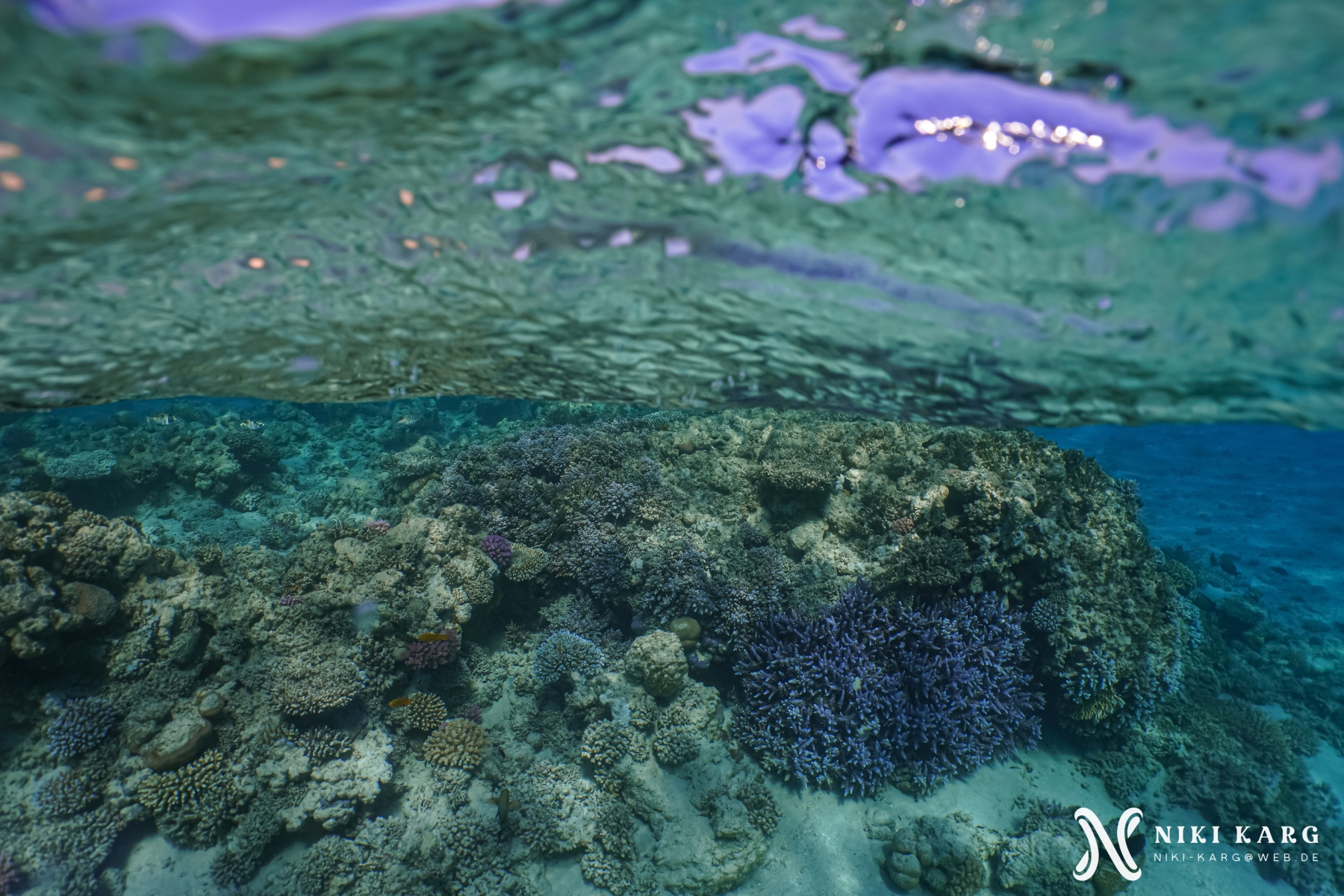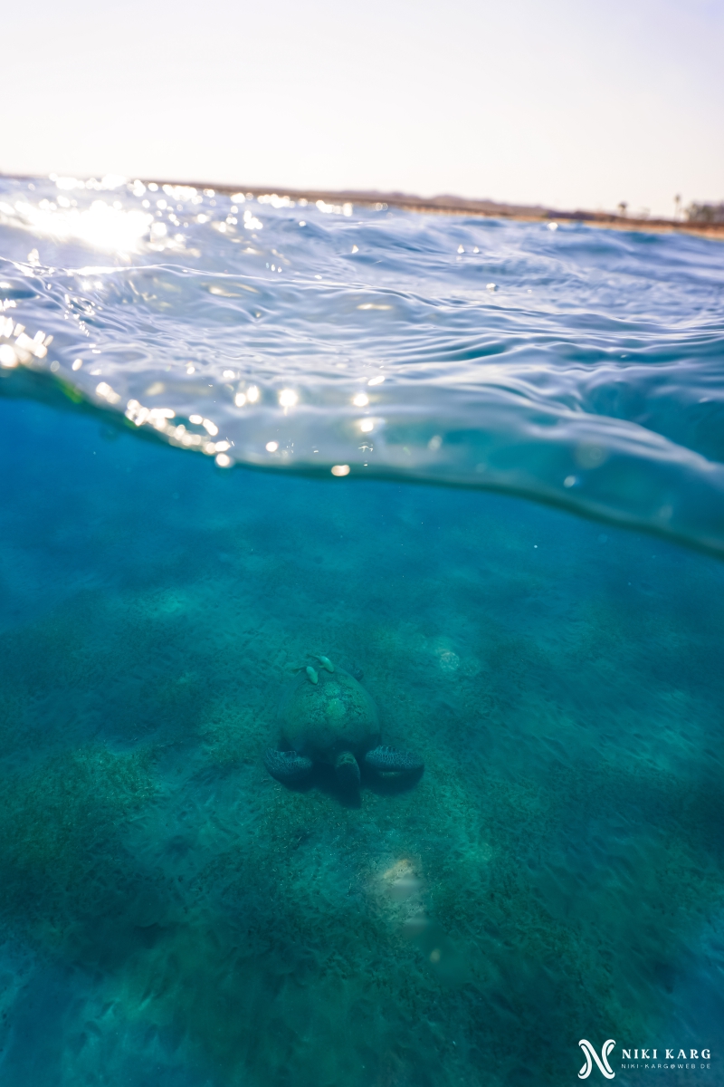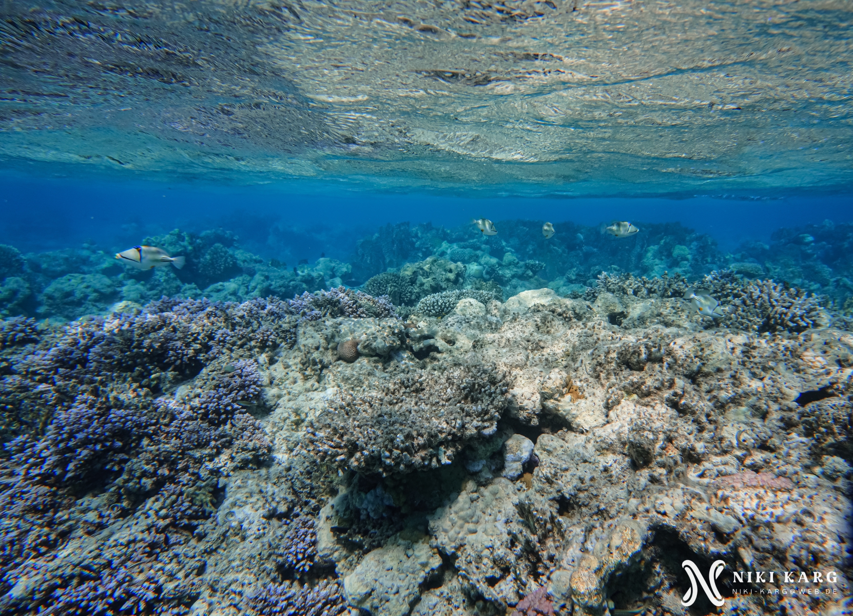Nach fast drei Jahren war es für einen Tauchurlaub wieder höchste Zeit. Im August entscheiden wir uns, falls die Coronamaßnahmen im Herbst nicht wieder verschärft werden, im Dezember nach Marsa Alam zu fliegen. In die Gruppe erstmal kommuniziert hofften wir auf „Mittäter“. Mitte Oktober buchten wir dann einen Flug und einen Aufenthalt im Mangrove Bay Resort. Leider schloss sich uns nur Niki an. Am 10. Dezember war es dann soweit. Wir drei bezogen dann unsere Zimmer am Nachmittag im Hotel und statteten auch gleich der Tauchbasis einen Besuch ab. Und bei gerade mal 30 Gästen im Hotel freuten wir uns auf ein entspanntes Tauchen. Einen Tag später gingen wir bei angenehmen 26 Grad Wassertemperatur ins Wasser. Nach dem ersten Tauchgang freuten wir uns noch mehr auf 10 Tauchtage mit zwei bis drei Tauchgängen pro Tag. Da wir von Sonnenaufgang bis Sonnenuntergang jederzeit ins Wasser durften, hatten wir entspannte Tage und jeder Tauchgang bot uns mindestens ein Highlight. Das Hausriff war fischreich, bunt und abwechslungsreich. Fischschwärme, Drachenköpfe, Garnelen, Rotfeuerfische, Drückerfische, Doktorfische, Unterwasserschnecken, Blaupunktrochen gehörten fast zu jedem Tauchgang dazu. Wir verfolgten Spuren am Sandboden und stießen auf Einsiedlerkrebse oder den „Unterwasserwolperdinger“, den Walkman. Ob uns eine Schildkröte begleitete, wir mit einem Oktopuss tauchten, oder ein Torpedo – Rochen vor uns her schwamm, die Tauchminuten rasten nur so dahin. Manchmal tauchte auch eine Adlerrochen aus dem Blauwasser auf und schwebte in einem Bogen um uns herum Leider ist hier seit zwei Jahren das Nachttauchen verboten, dafür waren wir jeden zweiten Tag um 6:15 Uhr bei Sonnenaufgang im Wasser, oder wir tauchten um 17 Uhr bei Sonnenuntergang bei unserem letzten Tauchgang des Tages wieder auf. Ob direkt vom Steg aus getaucht, oder mit dem Zodiak nach Norden oder Süden gebracht – es wurde bis zum letzten Tauchgang nie langweilig. Das beweist auch unsere Tauchzeiten von durchschnittlich 70 bis 75 Minuten. Der letzte und längste Tauchgang dauerte 101 Minuten, hier sogen wir alles nochmals auf und genossen ein letztes Mal die Unterwasserwelt im Roten Meer.